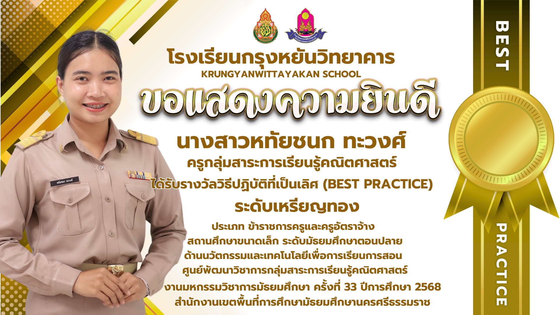 ได้รับรางวัลวิธีปฏิบัติที่เป็นเลิศ (ฺBEST PRACTICE)