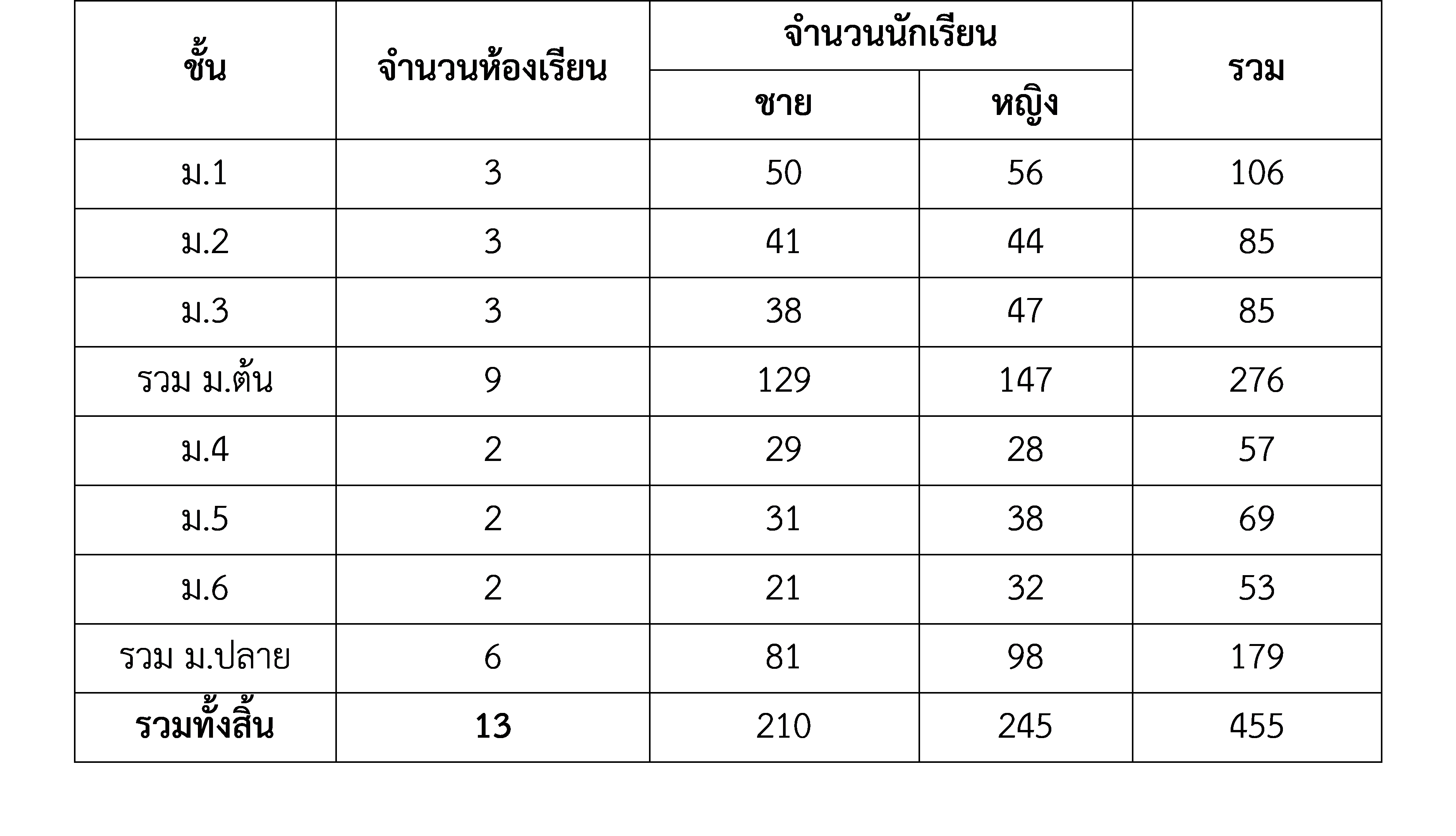 ข้อมูลจำนวนห้องเรียนและจำนวนนักเรียนจำแนกตามเพศ ปีการศึกษา 2567